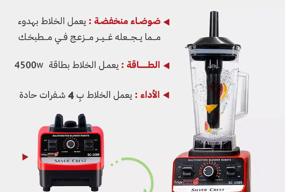 صراحة الخلاط قوي جدًا! 👏 قدرته 4500 واط واضحة في الأداء، يخلط المكونات بسرعة ويكسر الثلج والمكسرات بسهولة. أنصح به بشدة!